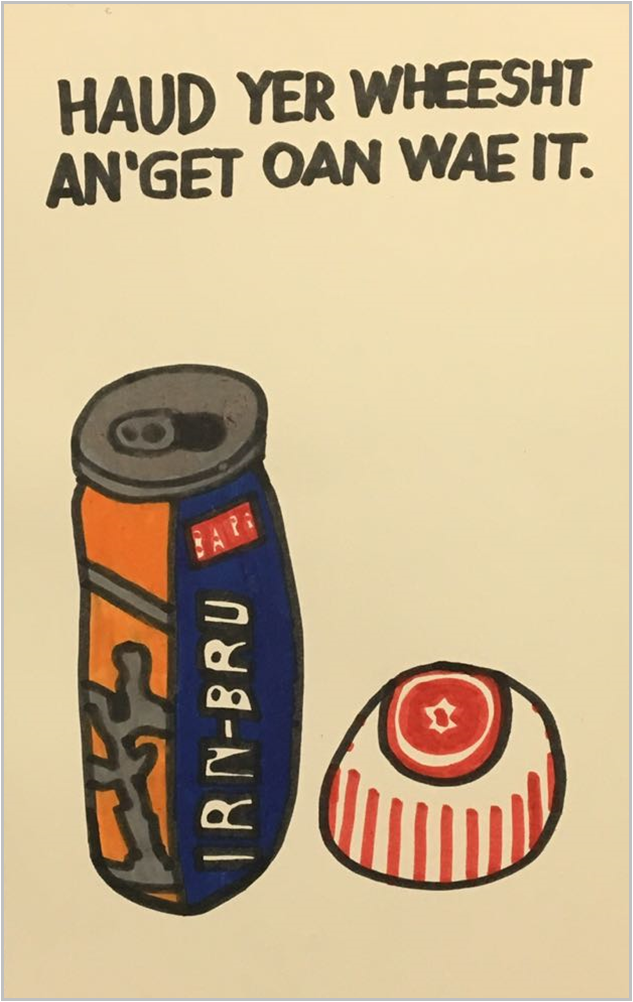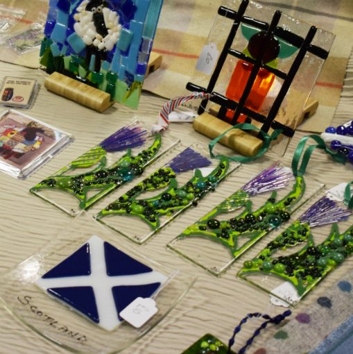 Our current exhibition by Art Opportunities explores ‘Images of Scotland’. From iconic images of Irn Bru cans to expressive illustrations of Highland cows, the artists that access the service have produced work in paint, textiles and fused glass exploring this theme. Visit our Gallery at Makers to see more.